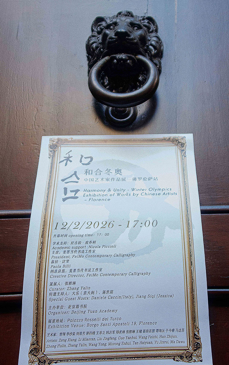 Firenze, 3 Marzo 2026 – Si è conclusa con uno straordinario successo di pubblico e critica la mostra "Harmony and Union Culture Winter Olympics" (Hehe dong ao 和合冬奥). L’evento, ospitato da Aria Art Gallery presso le prestigiose sale di Palazzo Rosselli Del Turco lo scorso 12 febbraio, è stato organizzato dalla Beijing Yuan Academy in collaborazione con FeiMo, traendo ispirazione dai valori e dallo spirito dei Giochi Olimpici Invernali 2026. L'esposizione ha presentato le opere di tredici artisti d'élite, gruppo di punta dell’attuale scena artistica cinese, capaci di coniugare l'eredità dei "Letterati" con le istanze più radicali del contemporaneo. La mostra ha messo in luce audaci innovazioni attraverso due tendenze chiave: la sperimentazione che preserva la struttura del carattere e la sua decostruzione radicale oltre il significato letterale, aprendo la via all’astrazione pura. Una rottura significativa con la tradizione millenaria è rappresentata dall’ampio impiego dei colori, che trasforma un’arte storicamente connotata dall’uso esclusivo dell’inchiostro nero. Questi artisti traggono ispirazione dalle testimonianze più remote della scrittura Han, integrando connotazioni popolari in un’arte fino a tempi recenti esclusivamente elitaria.
